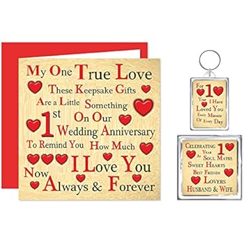 Our 1st Wedding Anniversary Gift Set Card Keyring Fridge