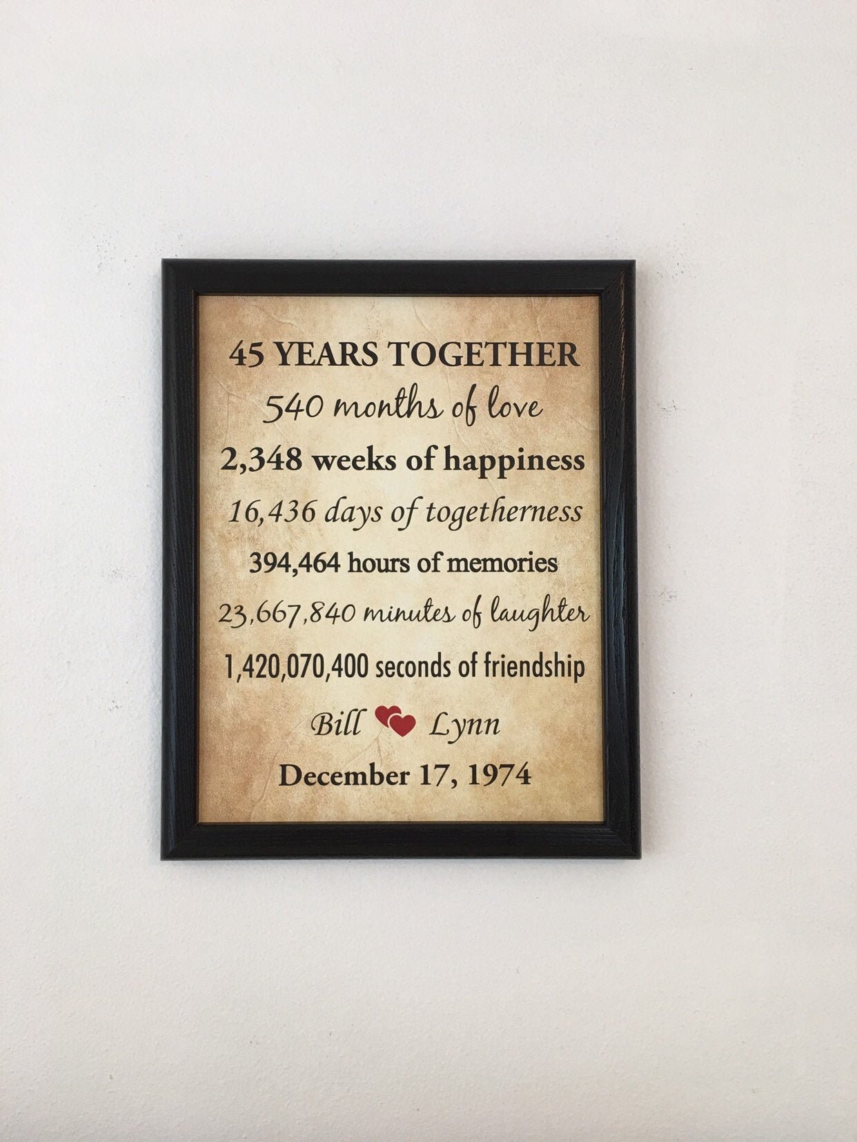 45th Wedding Anniversary Gifts 45 Year Anniversary Frame Etsy