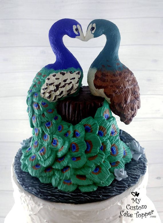 Peacock Wedding Cake Topper Peacocks Forming A Heart Etsy