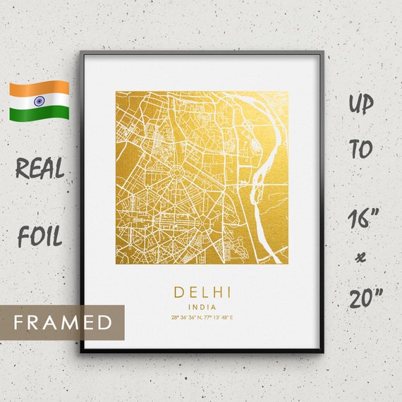New Delhi Personalized Map Gold Silver Foil Framed Print Etsy