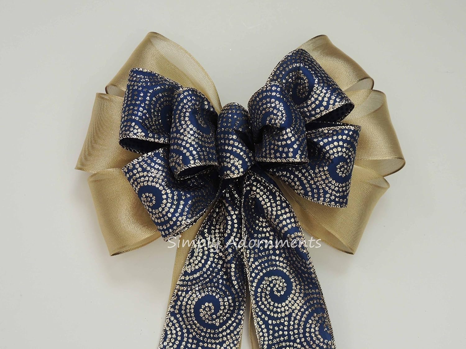 Amazon Com Gold Navy Bow Navy Swirl Gold Christmas Wreath Bow