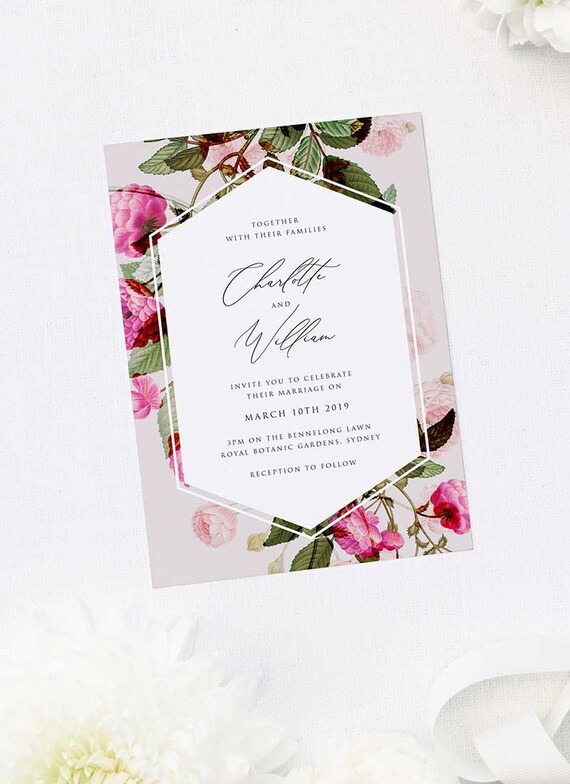 Stunning Garden Botanical Wedding Invitations Modern Vintage Etsy