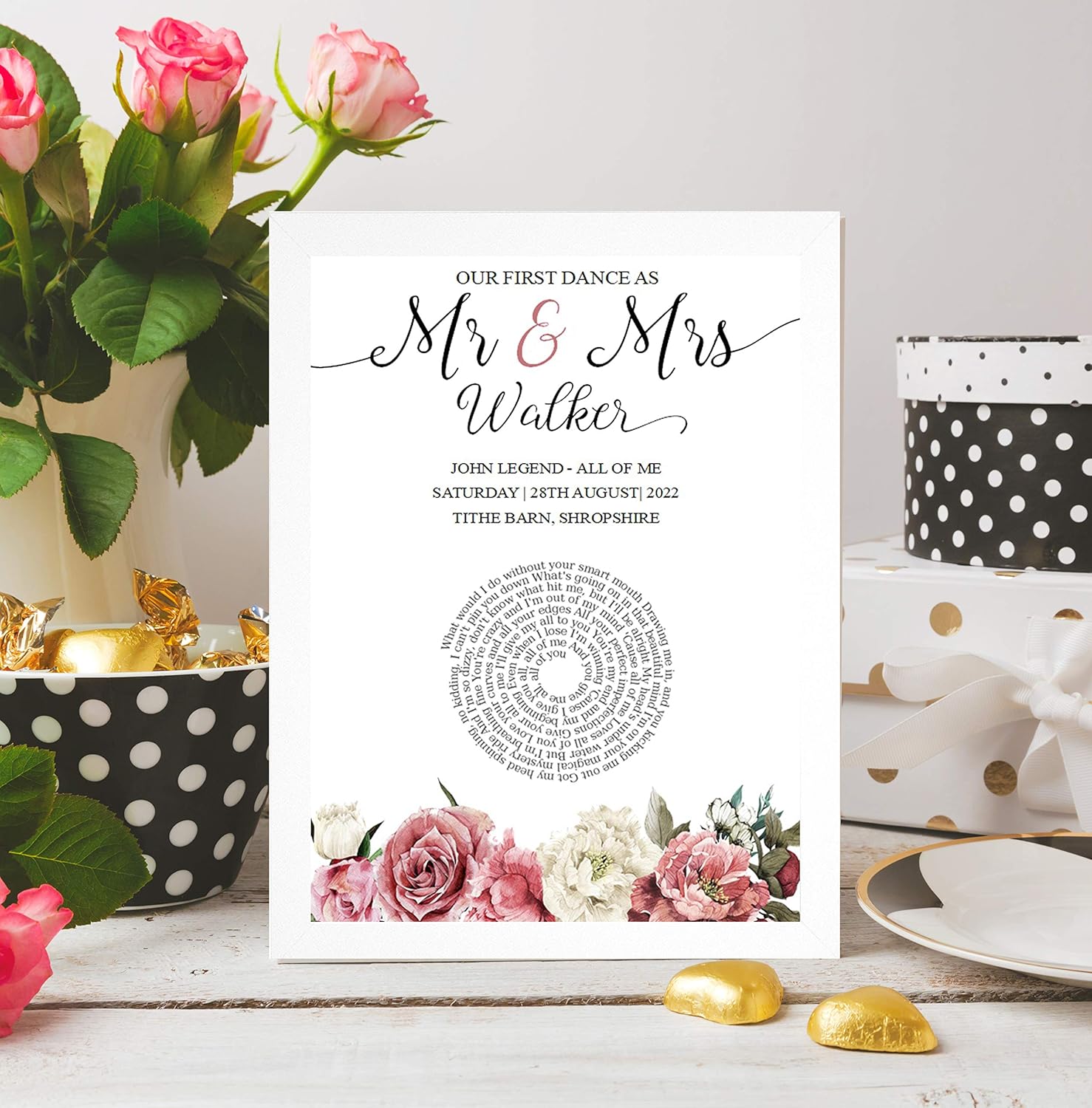 Personalised Wedding Gift Print 1st Song Lyrics First Dance Mr And