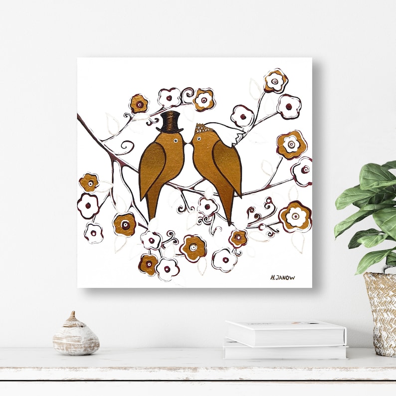 Love Birds Wedding Gift Original Acrylic Painting On Canvas Etsy