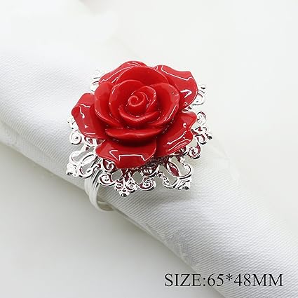 10pcs Red Rose Decorative Silver Napkin Ring Serviette Holder For