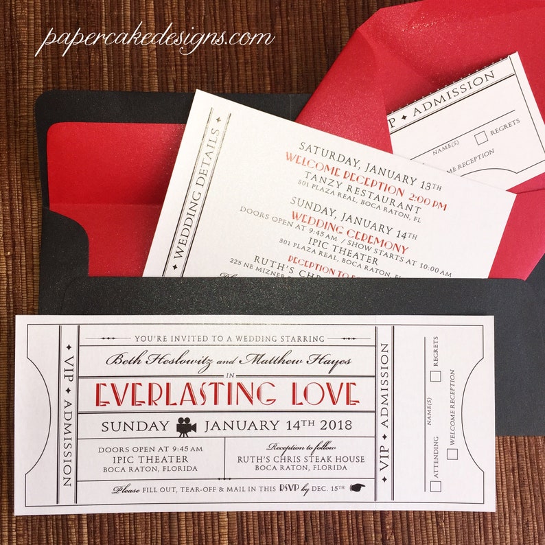 Vintage Ticket Wedding Invitation With Rsvp Tear Off Stub Etsy