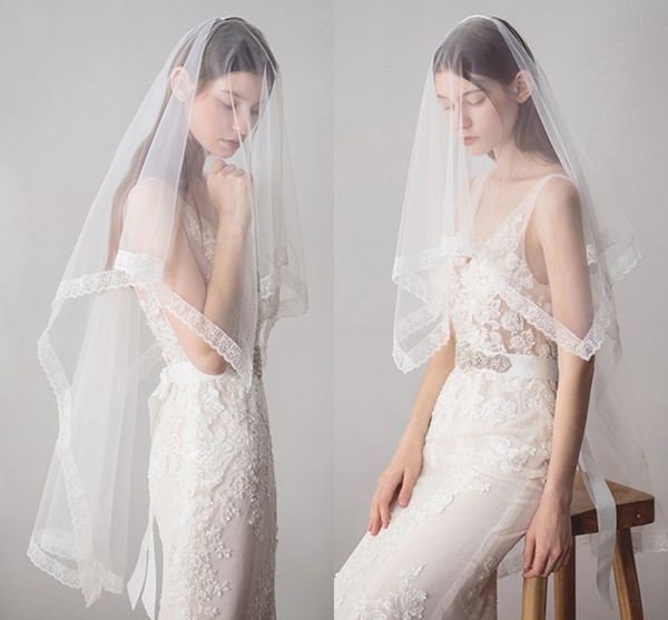 2018 Romantic Cheap In Stock Wedding Veils Applique Edge Bridal